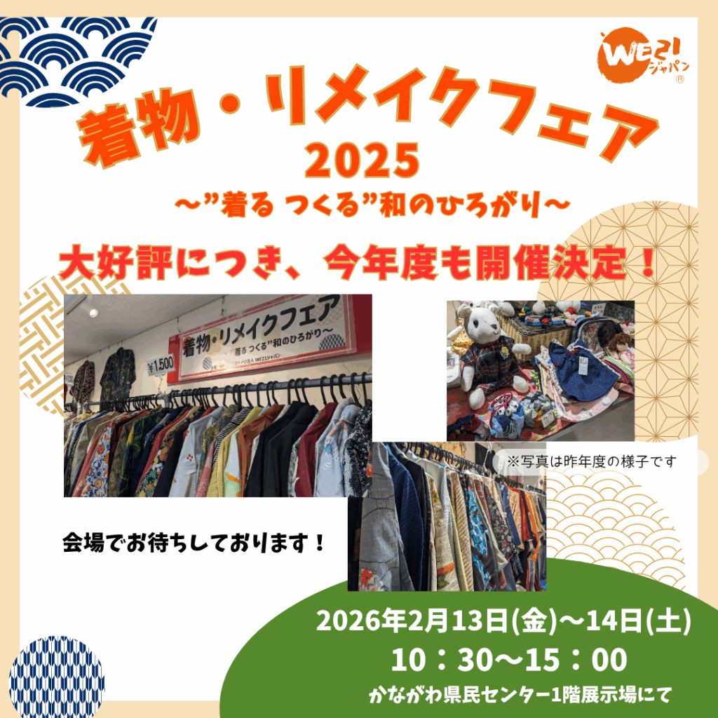 【2026/2/13(金)~14(土)】「 着物・リメイクフェア2025~”着る つくる”和のひろがり~」を開催します!
