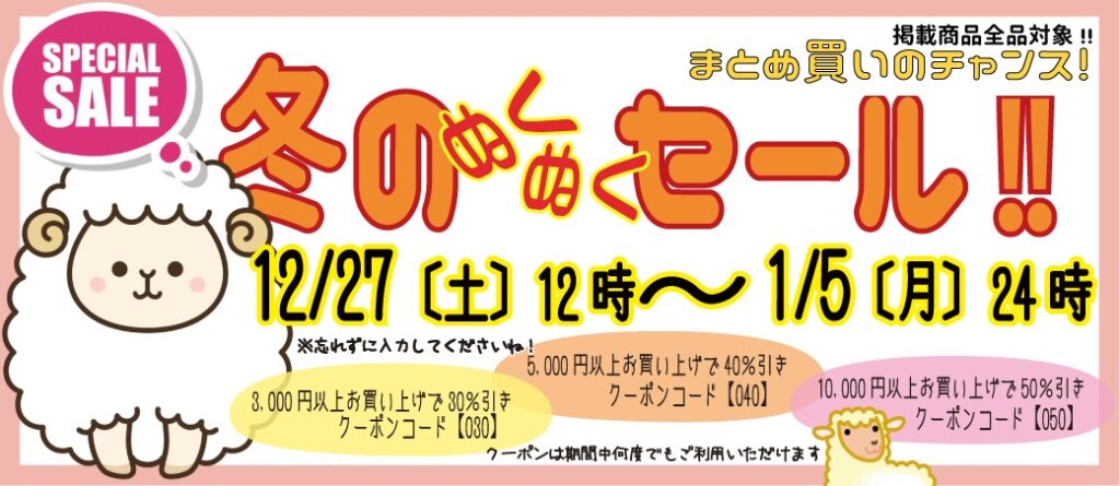 オンラインショップでは、ただいま冬のビッグセールを開催中!
